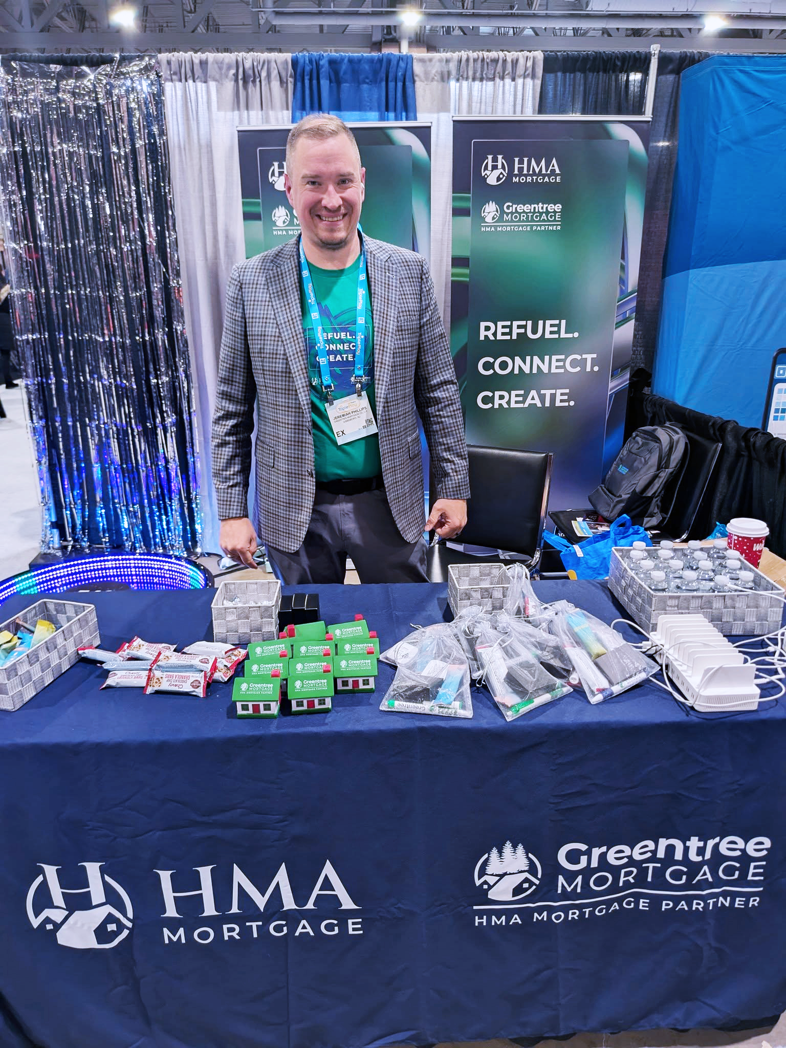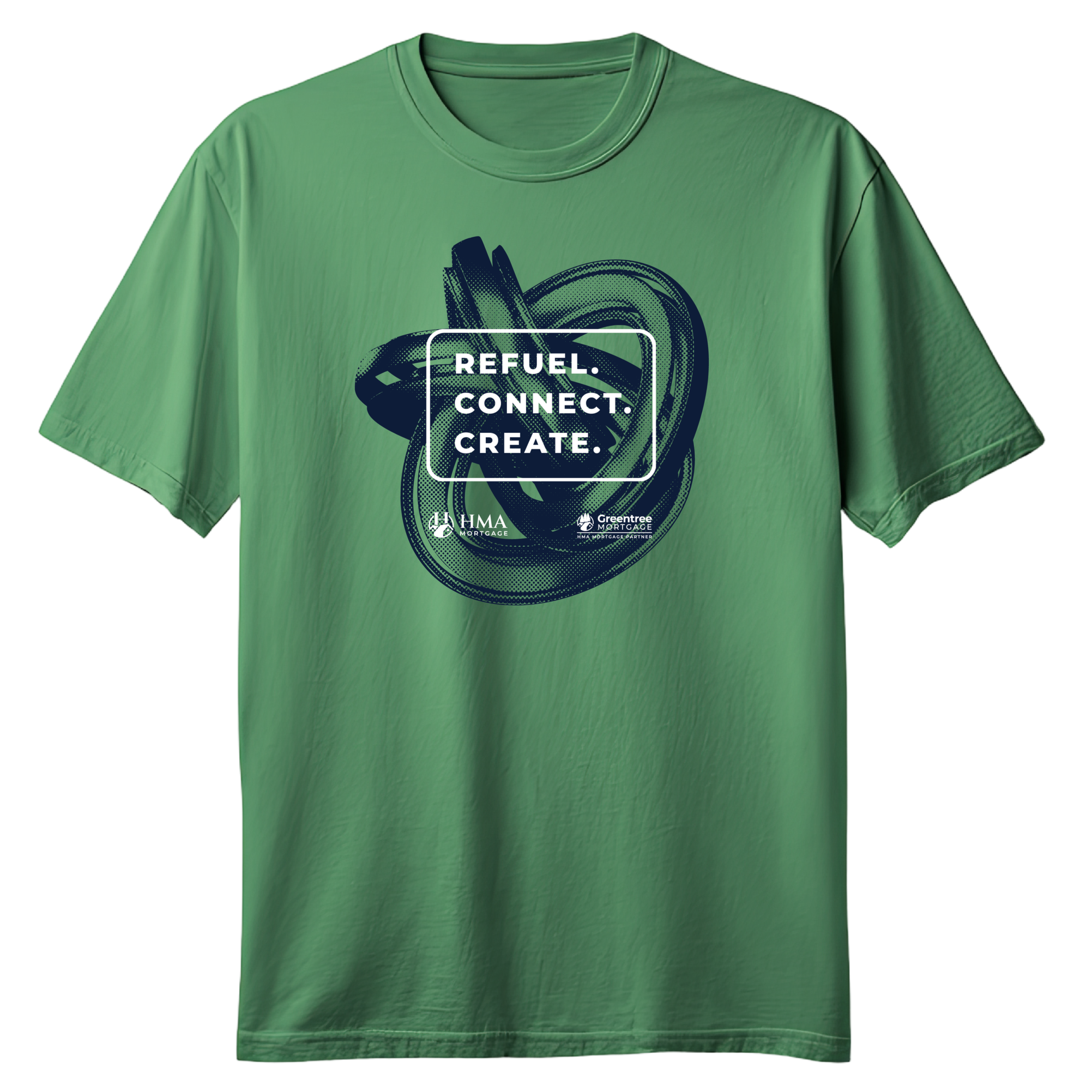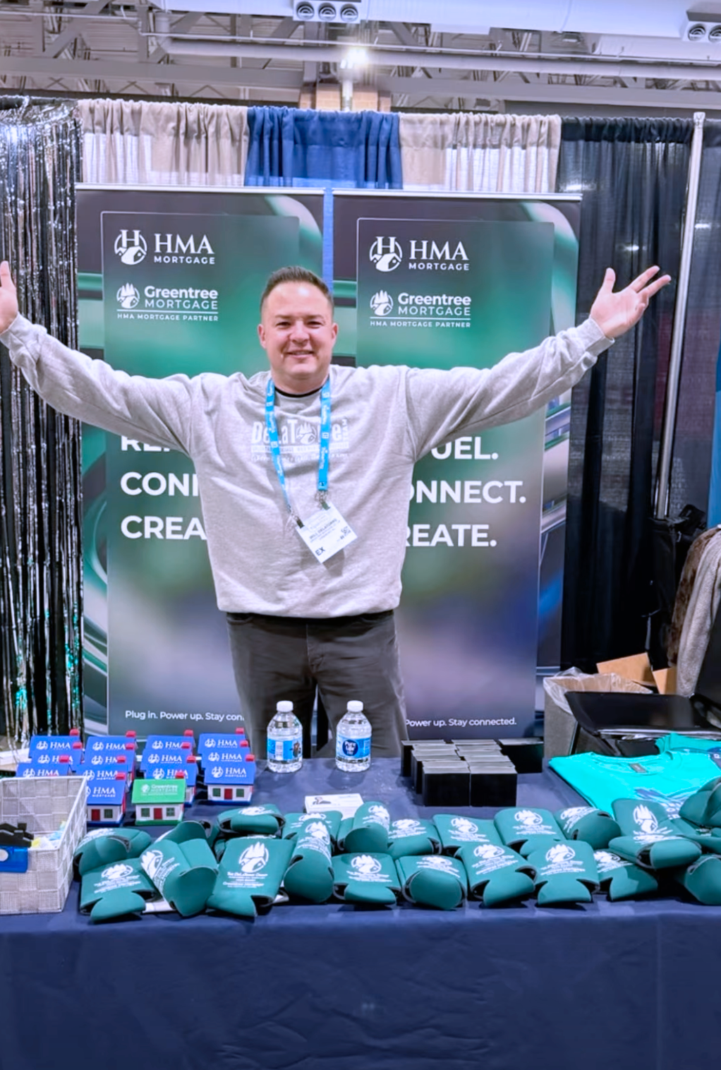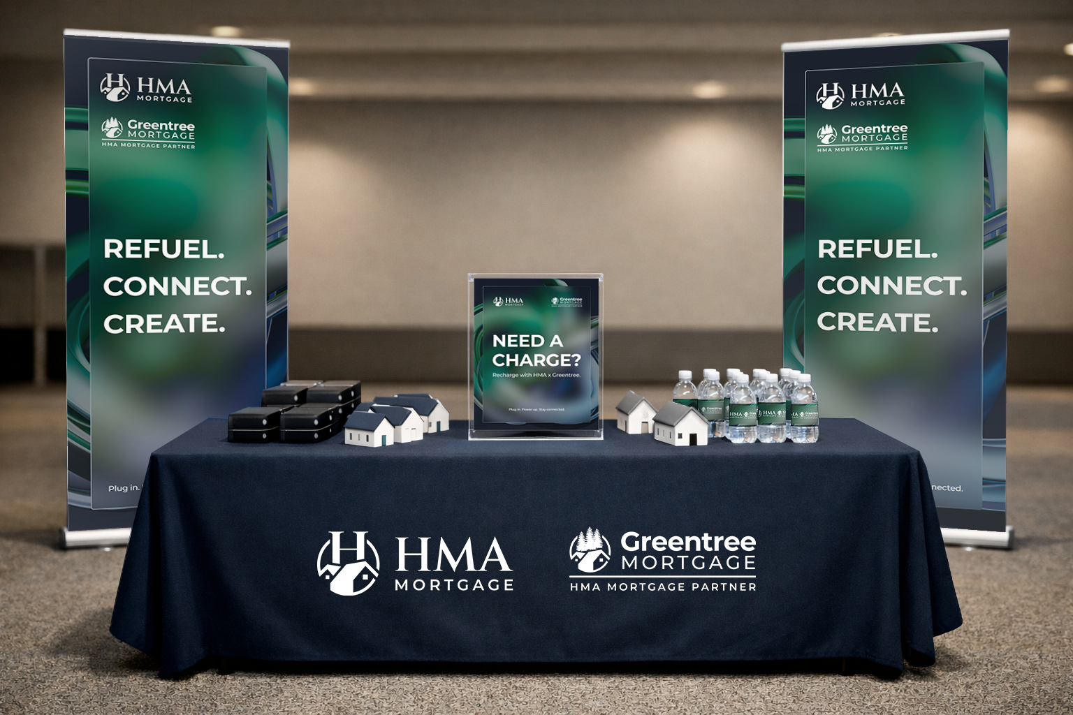 Triple Play is a trade expo and conference that draws thousands of real estate professionals each year. The goal was to create a cohesive visual system for the HMA Mortgage x Greentree Mortgage corner booth, where attendees could charge their devices, grab branded gear, and step into a 360° photo booth. The space became a hub for connection, networking, and recharging—both physically and digitally. The visuals were inspired by that same idea: momentum, energy, and connectivity.