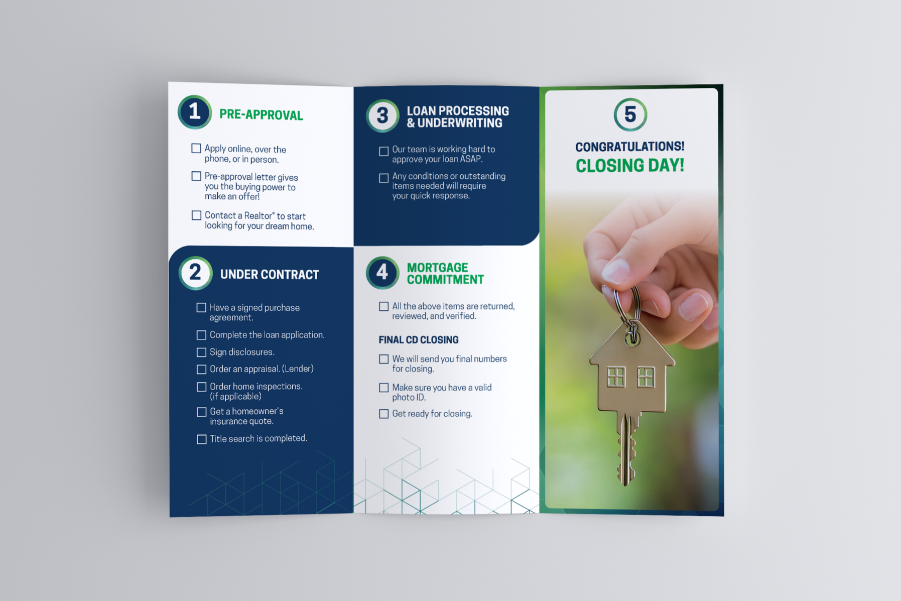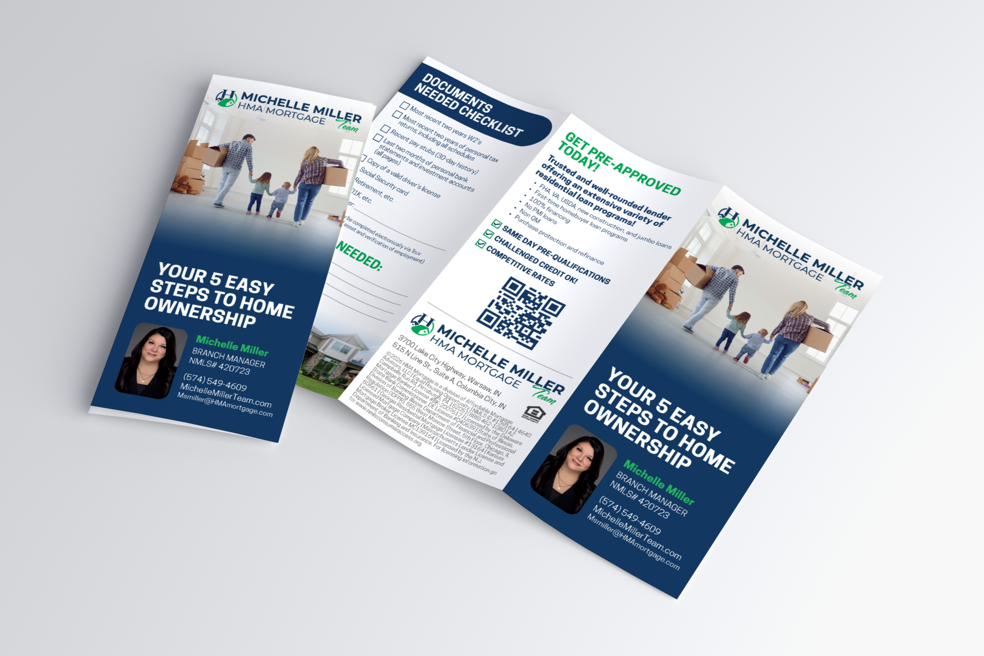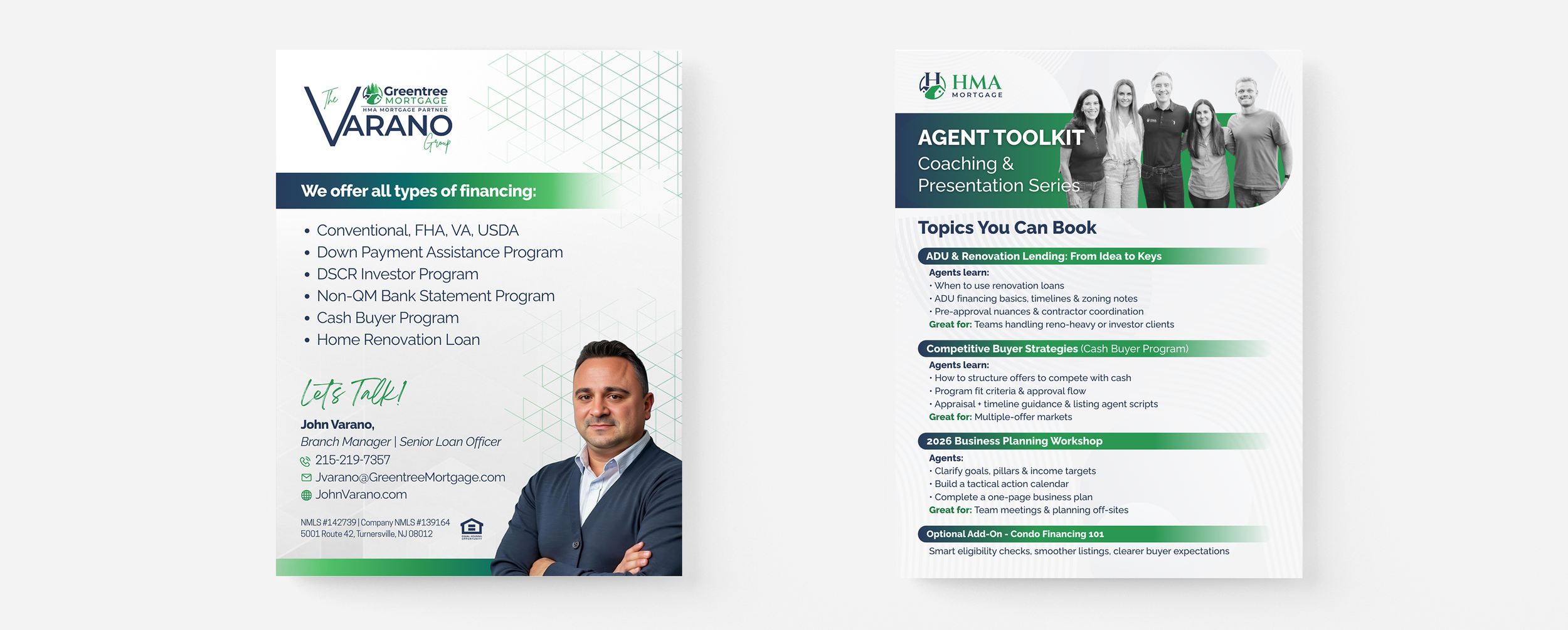 I created print materials for loan officers while maintaining compliance and contact information requirements. I structured content-heavy projects with hierarchy and organized layouts.